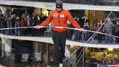 Cada vez que Nik Wallenda se trepa a la cuerda floja para batir un récord mundial de equilibrio o acrobacia –con los dos que batió el domingo, ya acumula diez-- la familia entera sube de algún modo con él. Su madre es quien le diseña los zapatos especiales de piel de alce y gamuza con los que se desliza sobre la soga. Su tío, Mike Troffer, es el ingeniero que diseña y perfecciona la estructura de cables y tensores que la sostiene. Su esposa y sus tres hijos, lo empujan, lo tiemplan para poner a prueba su balance y su concentración durante días enteros de prácticas. Su padre es la voz que le guía desde la línea de meta –“vamos, un paso más”, “desliza”, “dos pasos”— y que este domingo hizo las veces de sus ojos, cuando Nik caminó vendado el segundo tramo de su caminata, entre las torres oeste y este del complejo residencial Marina City de Chicago.