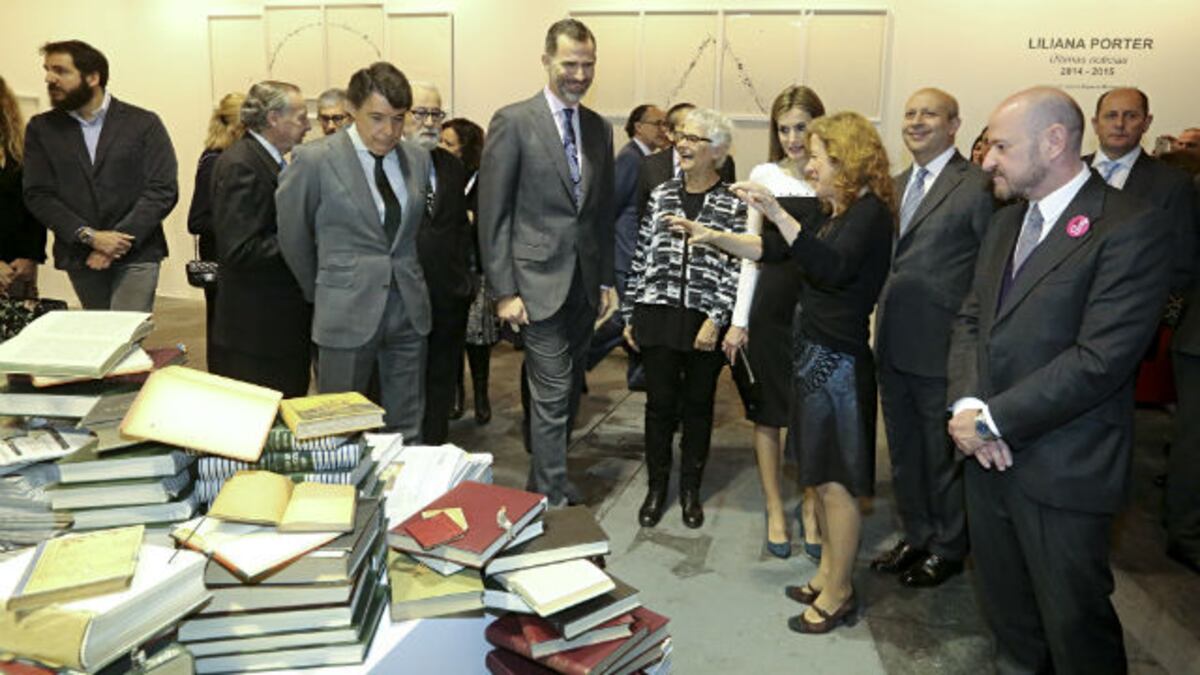 En su recorrido por los espacios que ocupan las 218 galerías de 29 países que hoy se abren al público, los Reyes se detuvieron en los stands más representativos de la feria, entre ellos el de EL PAÍS.
