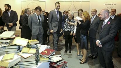 La comitiva oficial, encabezada por don Felipe y doña Letizia, fue recibida por la artista en compañía de los adjuntos a la dirección de EL PAÍS, Juan Cruz y Javier Ayuso, y la responsable del suplemento cultural Babelia, Berna González Harbour.