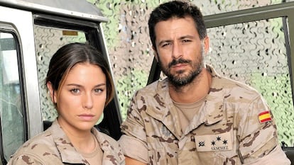 “La historia de amor, o más bien de desamor, es secundaria, aunque está ahí”, explica Salvador Calvo, el director del proyecto, que repite formato y cadena tras encargarse de Hermanos. “Es un cruce de caminos entre la ficción y la actualidad. Y entre el drama humano de la familia y la historia militar del rescate”, aseguró el pasado jueves Manuel Villanueva, director general de contenidos de Mediaset, en la presentación de la miniserie. Tuvo lugar en un escenario inusual: el cuartel del Mando de Artillería Antiaérea. Ubicado en la carretera de Fuencarral, en Madrid, justo enfrente de la sede de Telecinco, los actores pasaron allí dos semanas como parte de su adiestramiento antes de empezar el rodaje, que les llevó a Fuerteventura, Madrid y Bamako.