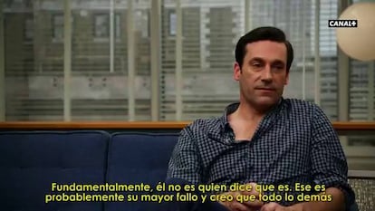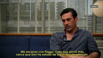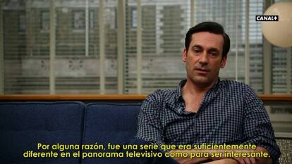 Jon Hamm ha pasado diez años de su vida interpretando al misterioso e intrigante creativo publicitario Don Draper. Pero todo llega a su fin, y Mad Men, la serie con la que ha conseguido el salto a la fama, se despide de la pequeña pantalla en unas semanas. Hoy arranca en Canal + Series (21.30) la segunda parte de la séptima y última temporada. Serán siete capítulos en los que actores y espectadores se irán despidiendo de unos personajes con los que han viajado a los años sesenta y setenta. En estos vídeos, cedidos en exclusiva por Canal +, Jon Hamm hace memoria de estos años dando vida a Draper y recuerda su paso por una serie que ya empieza a ser parte de la historia de la televisión.
