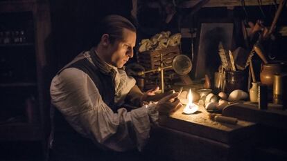 El intérprete es el primer adicto a esa inmediatez y acostumbra a recibir las noticias a través de Twitter . “Ni leo periódicos ni veo la televisión. Me gusta recibir la información en el instante”, afirma. Sin embargo, no está tan seguro de que esta fluidez informativa haya creado una sociedad mejor que aquella en la que vivía su alter ego. Woodhull sería, según Turn, el primer espía en EE UU, pero para Bell el espionaje se ha convertido en el pan nuestro de cada día. “Para bien o para mal, estamos vigilados las 24 horas. Por eso, no entiendo qué hay de ilegal en lo que hizo Snowden”, enfatiza.