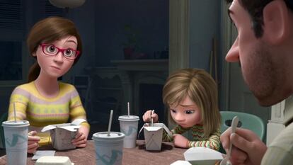 ¿Se puede contar en dibujos animados y pensando en un público mayoritariamente infantil toda la complejidad de la mente y los sentimientos humanos? Sí, Pixar y en concreto el director Pete Docter lo han logrado. Hoy Inside Out, que en España se titulará Del revés y se estrenará el 17 de julio, ha devuelto la esperanza en la factoría Pixar, que había errado en sus últimos filmes y en su apuesta por las continuaciones de sus obras maestras previas. Del revés, es original, sorprendente, apuesta por esa melancolía que ya exhalaba Toy Story, y aúna un guion inmenso, repleto de enormes aciertos descriptivos y narrativos con una gloriosa imaginería, que resuelve de forma sencilla y fascinante la ilustración de los sentimientos. Dentro de Riley, una niña de 12 años, conviven Alegría, Desagrado, Tristeza –de color azul, en lógico reflejo visual del doble significado en inglés de blue-, Ira y Miedo. Juntos toman las decisiones que mueven a la cría, y crecen junto a ella, cuidando sus recuerdos y viendo cómo crecen sus anclas emocionales: las islas de la familia, la amistad, el divertimento y el hockey (la afición de Ridley). Pero la familia se muda de Minnesota a San Francisco, y la nueva vida de Ridley, junto con una explosión de problemas en su interior, hace que Alegría y Tristeza se embarquen en una apasionante aventura.