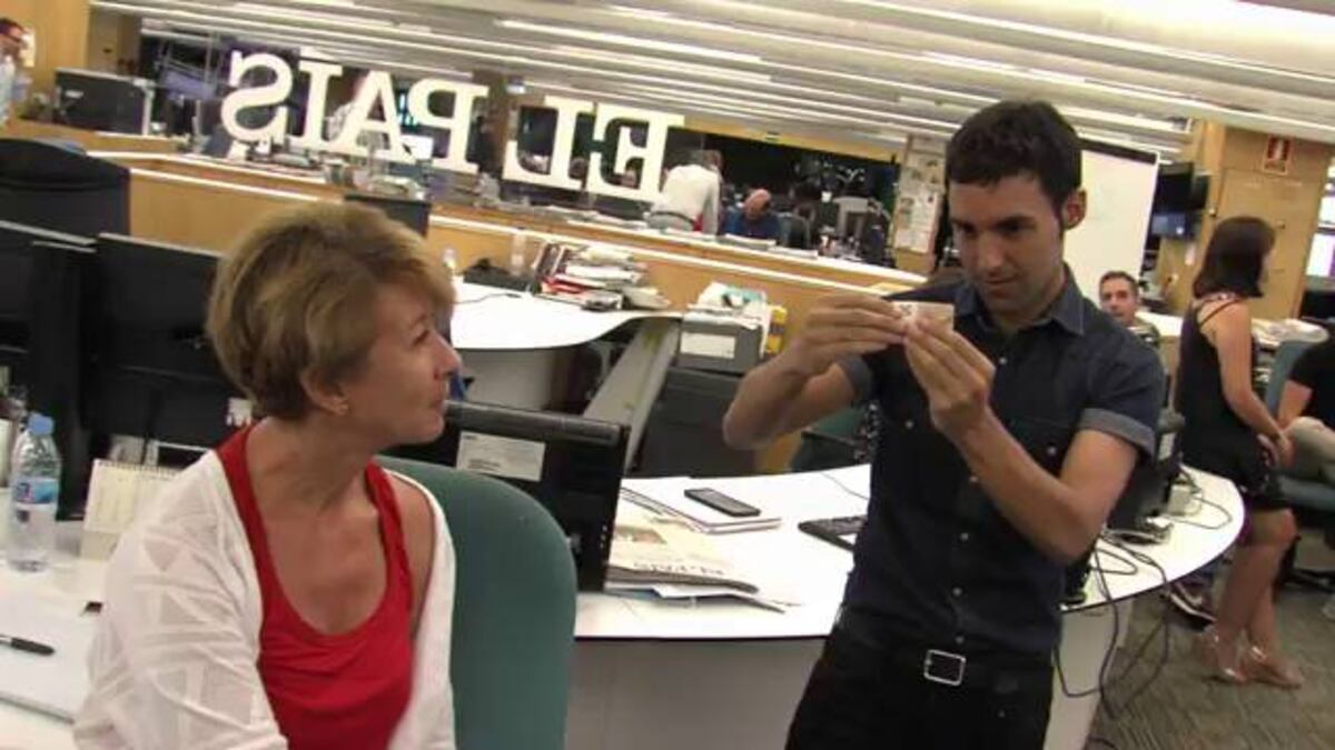 Pero antes de que se pueda ver El Mago Pop: 48 horas con, Antonio Díaz ha visitado la redacción de EL PAÍS, donde la rutina de los periodistas se ha visto interrumpida por los trucos de magia con los que los ha sorprendido.