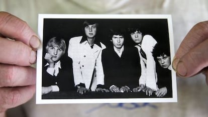La foto que enseña de la primera formación del grupo es una adquisición reciente. “Me la mandaron hace poco”, dice. En ella están, desde la izquierda, Anthony Phillips, Tony Banks, Mike Rutherford, Peter Gabriel y, enfurruñado, Chris.