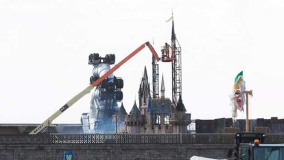 La publicidad que el misterio de la figura de Banksy confiere a su firma ha redundado en la altísima cotización de un artista nacido de la protesta contra el establishment, aerosol en mano, y empeñado hoy en seguir renegando de los tradicionales canales de comercialización de su obra. La exposición de Weston-super-Mare, ubicada a una veintena de kilómetros de su Bristol natal (uno de los pocos datos de su biografía que él mismo ha confirmado), ha sido orquestada bajo la cobertura de una supuesta producción cinematográfica que justificaría el trasiego de las últimas semanas en torno al clausurado centro de recreo bajo el nombre de Tropicana. Pero los habitantes de la población acabaron reparando en que esa anunciada filmación de una película de Hollywood, un thriller según se les dijo titulado Grey Fox, nunca se tradujo en la presencia de cámaras o de otra parafernalia que suele acompañarlas, y sí en cambio en el trasiego de extrañas esculturas como la que emula de forma desoladora el castillo en tono rosa pálido de la Cenicienta del cuento y que los fotógrafos consiguieron finalmente capturar desde el exterior. Habrá presencia española, según confirman a este diario fuentes cercanas al proyecto artístico de Banksy. Pero hasta el mismo día de la inauguración no se hará público el nombre. Cosas del Banksy.