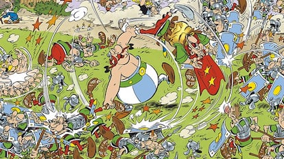 “Es un icono europeo, pero también un gran producto industrial”, reconoce Pons, que no esconde lo decepcionante y “errática” que fue la carrera de Astérix tras la muerte de Goscinny. “Se vivió un momento de disociación. Algunos pedían continuidad como en Spirou y otros el final como en Tintín. Uderzo fue muy inteligente. Se dio cuenta de que el personaje ya no merecía eso pero también que había trascendido a autores”. Al seguir el autor original vivo, el respeto fue también mayor. El anterior volumen, rodeado de expectación por ser el primero de una nueva etapa, vendió solo en Francia cinco millones de copias, cifra inalcanzable para cualquier otra historia. En España, Astérix lleva vendidos 24 millones. Las librerías españolas distribuirán 160.000 ejemplares en castellano, 25.000 en catalán, 4.000 en euskera, 3.000 en gallego y 1.500 en asturiano del último. El de ahora es un reto atípico: no se puede renunciar a los personajes pero tampoco a la marcada personalidad de estos autores.