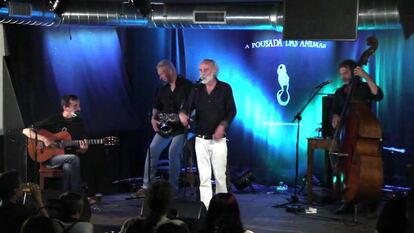 Dos semanas antes de fallecer, Javier Krahe actuó, como venía haciendo desde hacía 20 años, en el centro cultural A pousada das ánimas, en la localidad coruñesa de Boiro. Ese 28 de junio de 2015 fue la última vez que el cantautor madrileño se subió a un escenario. El dueño del local y amigo del artista, Suso Santamaría, le había dado ese mismo día un premio por toda su trayectoria. Ahora, ha iniciado una campaña de crowdfunding (krahefunding, como él la llama) para levantarle una estatua en Boiro, frente a la entrada de A pousada. Además, comparte con EL PAÍS una canción del la última actuación de Krahe. El concierto íntegro es una de las recompensas para los mecenas del proyecto de captación de fondos.