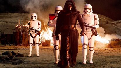 Tras el enésimo récord, Star Wars. El despertar de la Fuerza ha pulverizado prácticamente todas las marcas históricas del cine (mejor preestreno, mejor primer día en salas, mejor estreno a nivel global y demasiados etcéteras) y encara la guerra final, la más relevante, contra Cameron: Avatar y Titanic son respectivamente la primera y la segunda película más taquilleras de la historia del cine, con 2.586 y 2.028 millones de euros de ingresos en todo el mundo, según la web especializada Box Office Mojo. De momento, El despertar de la Fuerza se coloca en el cuarto puesto, con 1.435 millones, también por detrás de Jurassic World (1.554 millones). Entre estas últimas dos, por cierto, han llevado a EE UU y a todo el mundo en 2015 hasta los mayores ingresos registrados jamás en un año en las salas de cine: 10.200 y 35.400 millones, respectivamente.
