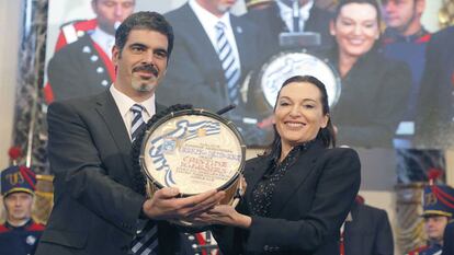 Emocionada y agradecida, Iglesias ha tomado el tambor que le convierte en embajadora de San Sebastián por el mundo. "Habéis puesto un foco en el arte contemporáneo, que es un lugar de reflexión, de encuentros con un lenguaje vivo capaz de construir espacios y que abren puertas en nuestro imaginario".