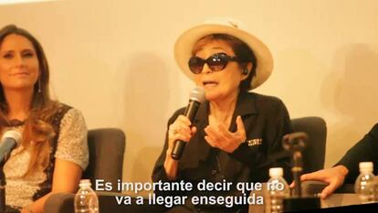 Ono (Tokio, 1933) entró al Museo de la Memoria y Tolerancia dando pequeños pasos, arrastrando los 83 años que hará a mediados de este mes. El museo, que abrió sus puertas en 2010, es uno de los mejores escenarios para mostrar la obra de la artista japonesa, que desde hace varios se ha convertido en una activista por la paz. “No vine aquí a decir que México es violento, no se trata de una competencia, pero hay que comenzar en algún sitio a sembrar la semilla de la paz para todo el mundo”, dijo la artista.