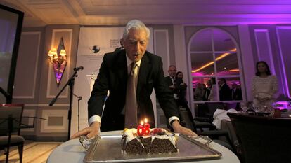 Fue el hijo mayor de Vargas Llosa, Álvaro, escritor y periodista como él, el que reveló ese regalo, en un discurso en el que calificó a su padre, al que precedió en la ceremonia con la que celebraron la edad del Nobel 400 personas en una cena en Madrid, de “Rolling Stone de la literatura”, porque sólo a él, o a Mick Jagger, se le supone energía suficiente para seguir inventando, en el escenario de la escritura, historias como las que preceden a Cinco esquinas, la última novela del cumpleañero. Éste dedicó su discurso de agradecimiento a quienes vinieron de lejos a rendirle homenaje, especialmente a cubanos y a venezolanos, cuyos respectivos países tendrán pronto, deseó, una libertad que él verá en ambos casos.