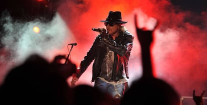 El trabajo de Axl Rose con AC/DC no le impedirá mantener sus compromisos con su banda, Guns N' Roses, que se volvió a reunir con su formación clásica en 23 años: habrá gira de este grupo por 21 ciudades estadounidenses a partir de junio, justo cuando Rose haya acabado el tour de AC/DC. Por cierto, el retorno de Guns N' Roses tampoco fue glorioso: el primer concierto fue en la mítica sala Troubadour de California el pasado 1 de abril. Un recital sorpresa al que asistieron actores como Bradley Cooper o Kate Hudson, y en el que Rose resbaló y se fracturó el pie izquierdo. Algo de lo que días después se burlaba el mismo Rose en Twitter con la foto de la radiografía y el mensaje: "Esto es lo que pasa cuando haces algo que no has hecho en casi 23 años". El retorno de Guns N' Roses reúne a su formación más legendaria: a Axl Rose le acompañan el guitarrista Slash y el bajista Duff McKagan.