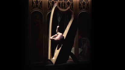 En los meses próximos aumentará, seguro, esta boscomanía e inundará tiendas y deseos, ojos, relatos y escenarios. Ha ocurrido con la performance Hieronymus B. de la coreógrafa Nanine Linning —en el vídeo que abre este artículo—. ¿Qué pasa cuando una pintura se pone en movimiento? El resultado ha sido una producción donde las formas bosquianas –a veces muy literales como la oreja gigante de la cual sale una mujer- se convierten en sueños y pesadillas que asaltan el espacio del público, como ocurre con el hombre-barca.