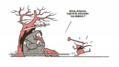 En un delicado ejercicio de apuesta y descarte, Max se ha llevado a El Bosco a casa, se ha metido su vida y su obra entre pecho y espalda, lo ha devorado y lo ha hecho suyo. Como no era cuestión de copiarlo —habría sido como copiar el mundo—, lo ha transformado, maximizado, aunque el espíritu y el aroma del genio están en cada una de las 72 páginas de El Tríptico de los Encantados. Una pantomima bosquiana. Ese es el título del libro que este clásico de la ilustración y la historieta española acaba de dar a imprenta por encargo del Museo del Prado con motivo del 500 aniversario de la muerte del genio holandés.