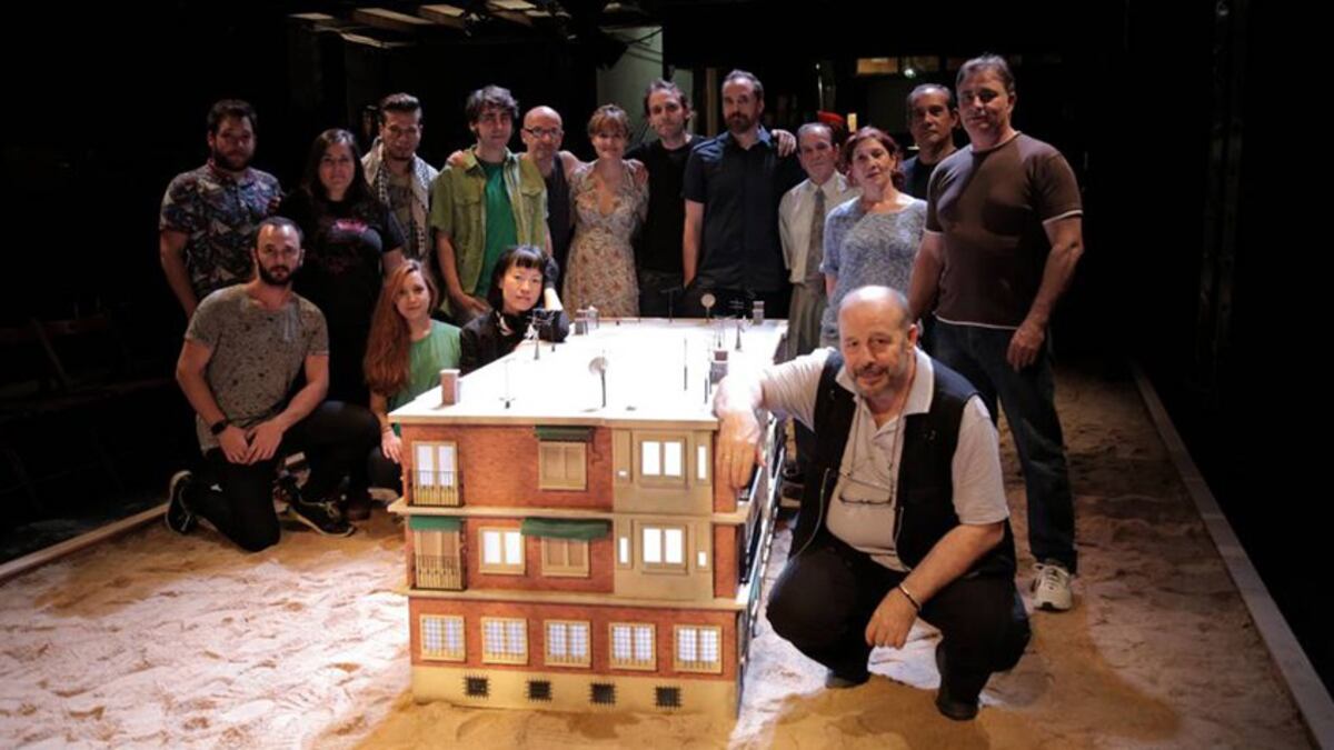 Historias de Usera nació en realidad como un relato sonoro basado en leyendas del barrio. El equipo de Sánchez-Cabezudo escogió siete y pidió a dramaturgos de renombre que las convirtieran en pequeñas piezas teatrales para ser escuchadas. Actores como Pepe Viyuela, José Sacristán, María Adánez, Asier Etxeandía y Ariadna Gil pusieron voz a los personajes en grabaciones que luego se volcaron en una aplicación móvil llamada Storywalker. Con ese material el director ha compuesto ahora el espectáculo con el que Kubik Fabrik se despide de su público. Actores profesionales y vecinos recrean esas historias alrededor de la maqueta de un edificio típico de viviendas de Usera.