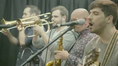 Todos están en círculo mientras Jacobo Serra (Albacete, 1983) escucha encantado cómo suena esa sección de metales que jamás hubiese pensado que podría tener para vestir sus canciones. Un saxofón, una trompeta y un trombón dan un espíritu casi cinematográfico a su pop primoroso. También las dos coristas, Lynsey y Ellie, dos chicas que no superan los 25 años, que ayudan a introducirse más en el estado melancólico de una canción como Don’t Give Me Up. Las tazas de café y las botellas de agua descansan en el suelo. El músico español está ensayando con su nueva banda, formada por alumnos de la escuela de arte LIPA (Liverpool Institute for Performing Arts), considerada una de las más prestigiosas de Europa y fundada por Paul McCartney en 1996. Forma parte del programa de colaboración anual con la Sociedad de Artistas (AIE) en España.