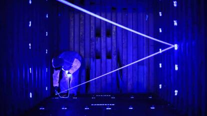 Muchos son proyectos de final de carrera o máster, como los del Royal College of Art, una de las instituciones que mantiene el sutil hilo que une Sonar al arte, junto con las fundaciones Sorigué y Mies van der Rohe. La célebre universidad londinense presenta The Black Box by Absolut, una instalación inmersiva, que juega con las percepciones del visitante y una selección de objetos sonoros, como una hamaca que te arrulla con el sonido de la lluvia, que se genera y modifica según el ritmo del balanceo. “La primera hamaca se basaba en el sonido de las olas, porque en Londres extrañaba el mar. Quiero crear paisajes sonoros más complejos con diversas hamacas, que reproduzcan los sonidos del mar, el viento, la lluvia y demás”, explica la barcelonesa Marta Velasco, coautora del proyecto.