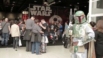 La Convención Europea de Star Wars y 60.000 almas sonrientes vuelven a su casa... esté donde esté su hogar. Entre los visitantes que han paseado por los pabellones del Centro de Exhibiciones ExCel Londres hay un sentimiento comunitario de felicidad, un espíritu que probablemente no era que albergaban hace algo más de una década, cuando George Lucas estrenó La venganza de los Sith, la última película de la trilogía que inicia cronológicamente el universo Star Wars. Hoy, cuando acaba este encuentro y se cumplen 40 años del estreno en la capital británica de La guerra de las galaxias, todo parece encarrilado: familias de tres generaciones se confiesan fans de las espadas laser, las mujeres han logrado el papel que merecían en las tramas de las peliculas y las series, y los iconos de los setenta como Mark Hamill y Carrie Fisher reciben el homenaje que se habían ganado. Y sí, se venden miles de muñequitos, pero en la mercadotecnia más poderosa de la industria de cine los muñecos son un mordisco menor de la tarta en comparación con camisetas, juguetes, posters, disfraces, robots, libros, tebeos, videojuegos...