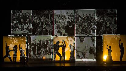 Lorca está presente en la composición renovada y actualizada de los clásicos, en el piano, en las fotografías repartidas en las 10 pantallas que se mueven por todo el escenario y con la que los propios bailaores juegan. Y también en dibujos más abstractos de la figura del poeta, que el público adivina: “Ahí, ahí está Federico”, dice una señora entre las primeras filas.