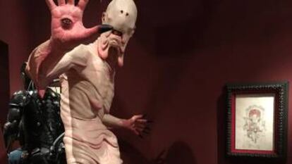 El peluche es una mínima muestra de las monstruosidades que saltan a la vista en esta exposición donde las criaturas nacidas de la mente de Del Toro para películas como El laberinto del fauno (tanto el fauno del título como el hombre pálido con los ojos en las palmas de sus manos) están reproducidas a tamaño real y conviven con esas otras esculturas gigantescas que decoran sus casas, como ese Boris Karloff transformado en Frankenstein, un Edgar Allan Poe sentado a su mesa o diversas criaturas salidas de la película Freaks.