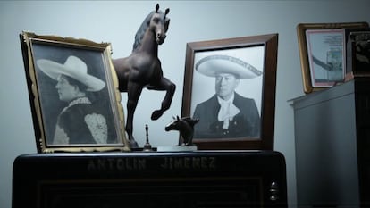 Este episodio, prácticamente desconocido por la Historia, sirve para dar a Matria ese punto de exotismo siempre presente en las mejores historias mexicanas. Antolín Jiménez fue un férreo defensor de la charrería. Los trajes de gala y la indumentaria ranchera eran una muestra de su exacerbado patriotismo. Sin embargo, como muchas de las otras instituciones que encarno en vida, eran más una fachada que sustancia. Llanos cuenta que su abuelo era más un “charro de banqueta”. “En cuatro años de investigación me di cuenta de que nunca hizo una suerte de charro en las 700 imágenes encontradas en el archivo”, relata el director.