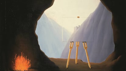 Más que un maestro del chiste visual, la exposición lo define prácticamente como un filósofo. “El arte de pintar es un arte de pensar”, dejó dicho el propio Magritte, que irrigó su obra con “una constante meditación crítica sobre la relación entre el mundo y el hombre”, como afirmó Paul Nougé, jefe de filas del surrealismo belga. Toda nueva monográfica centrada en un nombre tan reconocido debe contener una tesis novedosa. La del Pompidou consiste en afirmar que Magritte no fue solo un surrealista. “El objetivo de la muestra es renovar la lectura de su obra y retirarle esa etiqueta de pintor surrealista, que lo ha encerrado en una categoría que Magritte sobrepasó con creces”, confirma Ottinger. “En realidad, no fue un heredero del idealismo de inspiración romántica de los surrealistas parisinos que encabezaba Breton, sino que estuvo inscrito en la escuela belga, de formación científica e inspiración marxista”. La exposición tira de ese hilo y observa la relación de su obra con la gran filosofía, de Platón y Plinio el Viejo hasta Hegel y Foucault, quien le dedicó una obra de referencia que dignificó su producción y con quien mantuvo correspondencia hacia el final de su vida. Todos ellos se plantearon los problemas que plantea la representación de la realidad a la que aspira el arte, empezando con el mito de la caverna. “La traición de las imágenes”, en palabras de Magritte.