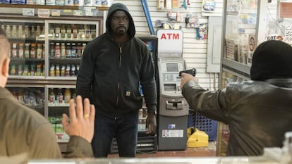 Cuando en 2012 George Zimmerman tiroteó en la calle al joven negro Trayvon Martin, la sudadera con capucha que llevaba el asesinado se convirtió en un símbolo contra la violencia racial en EE UU. Ahora es alguien muy distinto quien luce una de esas prendas. Se llama Luke Cage, es protagonista de la nueva serie de Netflix y todo un superhéroe Marvel. Las balas le rebotan. Pero su mensaje es el mismo que gritaban los manifestantes: el villano no se define por su vestimenta y color de piel; los afroamericanos también son héroes. Una obviedad que no parece tan clara guiándose por los referentes culturales contemporáneos.