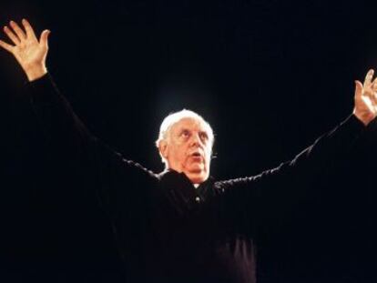 Dario Fo se cruzó en mi camino en los años ochenta. O mejor diré, para evitar la presunción, que yo me crucé en el suyo, que era una avenida por la que circulaban las más antiguas tradiciones del teatro europeo. Hice en Barcelona dos obras suyas que me reportaron grandes satisfacciones y un éxito incipiente que celebré con gran alegría: Tenía dos pistolas de ojos blancos y negros y Aquí no paga nadie que nosotros representamos con el título Sopa de mijo para cenar, en versión de Fermín Cabal. Dario Fo era un maestro, estaba tocado por la mágica inspiración italiana del arte, la pintura, la arquitectura, la poesía, la canción y, por supuesto, el teatro. Entre los grandes maestros de una generación, él era un referente angular. Estaban él y Vittorio Gassman y, aquí en España, Adolfo Marsillach, Fernán Gómez y Rabal. Todos ellos fueron para mí modelos y reverenciados iconos del camino que yo quería recorrer también por mí mismo. Expresaban la dignificación del teatro y de la función del actor como una tarea casi sagrada. Ya no nos quedan más que algunos y algunas figuras que todavía representan esta luz. La siguiente generación, la mía, estamos ya en la primera línea de fuego exhibiendo el penacho de la mueca egregia y esperando en las trincheras el incierto amanecer. ¡Que venga cuanto más tarde mejor! Si Dios quiere.
