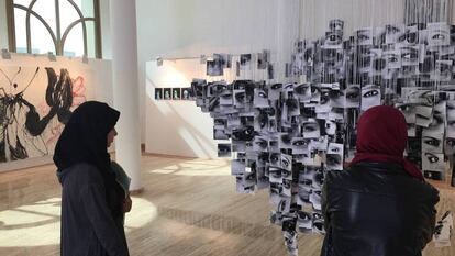 El director de la bienal de Arte Contemporáneo de Casablanca, Mostapha Romli, se pasea por la imponente explanada de la Gran Mezquita de Hassan II, la más grande de África, en la capital económica de Marruecos. Ahí mismo, en esa plaza donde caben 80.000 fieles y donde acudieron hace 23 años 800 periodistas en el día de su inauguración, hoy se exponen obras de 136 artistas procedentes de 60 países. Y algunas de esas obras hablan -hablan, literalmente- de temas que podrían sorprender en el entorno de una mezquita, como son los abusos sexuales, la indefensión de la población gay y los transgénero o la regresión que ha supuesto para el mundo la presencia de Donald Trump en la carrera hacia la Casa Blanca.
