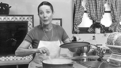 Sí, existió un tiempo en que en la televisión no había cocineros. En esos años, una mujer que no era cocinera enseñaba a guisar a los espectadores españoles. Elena Santonja dirigió y presentó Con las manos en la masa, un espacio que TVE estrenó en 1984 y que permaneció en antena durante siete años, del que aún hoy beben casi todos los programas de cocina que se emiten en las diferentes cadenas. Su esquema era simple: dos recetas a elaborar y un personaje invitado, al que se entrevistaba mientras se preparaban los alimentos. En su plató estuvo presente casi al completo el mundo cultural español. Desde Gonzalo Torrente Ballester hasta Rosa Chacel. Desde Fernando Fernán Gómez hasta Pedro Almodóvar. Desde Joaquín Sabina hasta Alaska. Un desfile del que cualquier cadena de televisión presumiría durante décadas. La sintonía de Con las manos en la masa, compuesta por el dúo Vainica Doble —del que formaba parte Carmen Santonja, hermana de Elena—, e interpretada a dúo junto con Sabina, es una canción por la que, aún hoy, matarían cientos de cantautores y que permanece en la memoria de varias generaciones que se asomaban a una televisión con solo dos canales.