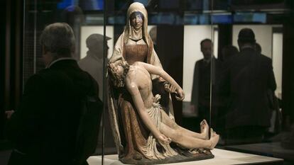 Una de las piezas ahora más célebres de uno de los museos más populares del mundo es un pequeño rey de marfil. Y debe su fama, sobre todo entre los niños, al fenómeno editorial de Harry Potter, que citaba en uno de sus libros esa pieza de ajedrez tallada entre 1150 y 1200, muy probablemente, en Noruega, si bien fue hallada en Escocia. Pertenece a la colección del British Museum, pero su espesa barba y su aparente quietismo, quebrado por la actitud alerta de sus manos sobre la espada que descansa en su regazo, se pueden contemplar desde este miércoles en la sede de CaixaForum de Madrid. Forma parte de la exposición Los pilares de Europa. La Edad Media en el British Museum y se organiza en virtud del acuerdo firmado hace un año por la Obra Social de La Caixa y la institución londinense, gracias al cual la primera exhibirá hasta cuatro grandes muestras con los préstamos de la segunda hasta 2020.