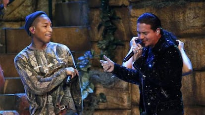 El premio de Persona del Año, el homenaje a toda una carrera que concede cada año la industria, fue para Marc Anthony. Lo que estaba anunciado en el programa como “Marc Anthony canta con un invitado especial” fue la verdadera sensación televisiva de la noche. Sobre el escenario apareció Jennifer López y juntos cantaron Pega la vuelta, de Pimpinela. López y Anthony estuvieron casados entre 2004 y 2011 en la cima de sus carreras y fueron la realeza del famoseo latino. Sobre el escenario montaron una actuación intensa, que acabó con elogios de ambos y un beso que será viral durante días. López llamó “amor mío” a Anthony y lo presentó como “una leyenda viviente que va desnudando su corazón y su alma en su viaje musical”. El público pidió en pie y a gritos que se besaran. Lo hicieron como buenos profesionales.