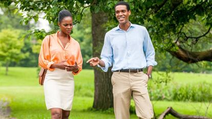 No dispongo de ninguna información previa al ver la película Michelle & Obama (título mosqueante, ya que adivinando la identidad de sus ilustres protagonistas lo lógico sería titularla con sus nombres, o sea Michelle & Barack, sobra el apellido del último dueño del universo), no conozco al director y guionista, ignoro si el retrato de la primera cita entre esta pareja destinada a ocupar un lugar de privilegio en la historia pertenece exclusivamente a la imaginación del guionista o si los personajes reales le contaron lo que allí ocurrió. En cualquier caso, me parecen deliciosos los 80 minutos que dedican a narrar la incertidumbre, la ilusión, los miedos, el deseo, los intentos de comunicación, el atrevimiento, el laborioso, natural o calculado proceso de seducción que puede establecerse a lo largo de un día entre una mujer fuerte, aparentemente dura y pragmática y un señor que despliega estratégicamente su poderoso encanto.