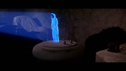 El primero, que encabeza este artículo, es el punto de inflexión que da pie a toda la trama del primer filme de Star Wars. Al principio de la película, Leia era capturada por Darth Vader. Antes, sin embargo, lograba lanzar por el espacio la semilla de la rebelión definitiva. "Ayúdanos Obi-Wan Kenobi, eres nuestra última esperanza", es el mensaje que Leia grababa y fiaba a R2-D2, con la misión de buscar al jedi desaparecido.