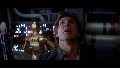 La líder de una rebelión galáctica no tiene mucho tiempo ni espacio para los sentimientos. De ahí que fueran pocos los momentos en los que la princesa Leia cediera a su atracción por el contrabandista Han Solo, interpretado por Harrison Ford. Pero en El imperio contraataca ambos terminaban por fin por besarse, hasta que C3PO arruinaba su intimidad.