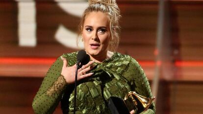 Adele arrasa esta noche. Y, sin embargo, en su discurso dedica unas palabras de agradecimiento a Beyoncé, a quien dice considerar su heroína.
