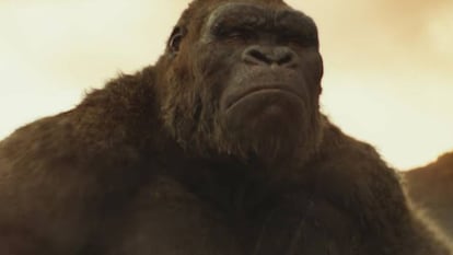 Mientras un sol crepuscular se desangra en el cielo y una lluvia de destrucción suspende el tiempo, King Kong y Samuel L. Jackson se baten en un intenso duelo de miradas