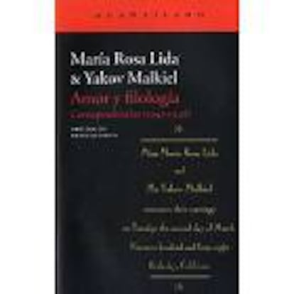 "Una novela de amor, a ratos rosa”, dice Francisco Rico de la correspondencia intercambiada entre febrero de 1947 y el 23 de enero de 1948 por María Rosa Lida y Yakov Malkiel, una filóloga argentina (y judía) y un filólogo nacido en Rusia, educado en Alemania y emigrado en Estados Unidos, porque también era judío. Por supuesto, Rico — que ha sido el promotor de este libro y su prologuista— sabe muy bien que este epistolario tiene mucho más alcance que el de permitirnos contemplar los ritos de cortejo (pedantes a veces, ingeniosos siempre) de dos filólogos que ya no son veinteañeros: ella es ya una de las más brillantes estudiosas de las letras españolas antiguas; él profesa en Berkeley, ha publicado renovadores estudios sobre la historia del léxico español y tiene ideas propias sobre la escuela española de filología.