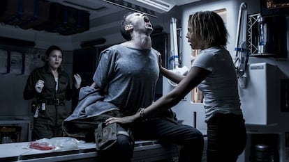 O sea: ¿por qué, para qué retorna el octavo pasajero? Para una historia que ni siquiera es mala, rodada con tanta efectividad como ausencia de alma, mezclando la ideología de la estomagante Prometheus (dios, el creador, el control o la culpa sobre sus criaturas, chorradas enfáticas) con la trama en la que la inolvidable teniente Ripley se proponía seguir viva y derrotar a ese alien implacable que desconoce la piedad, que además de exterminar a los humanos se lo quiere montar, acechándola en la oscuridad, con esa dura, responsable y estilosa mujer que se queda en camiseta y en bragas cuando cree que su retorno a la Tierra, al lado de su gato, ya no tendrá complicaciones después de haber sufrido la aniquilación de su gente y la presencia del infierno.