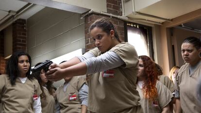 En Estados Unidos hay un dicho que hace referencia a ese momento en el que los locos se hacen cargo del manicomio. Esa es la premisa de la quinta temporada de Orange is the New Black, el momento en el que la población penitenciaria de la cárcel de mujeres de Litchfield se hace con el mando de la prisión. Es la reacción a los sucesos que tuvieron lugar al final de la cuarta temporada con la muerte de uno de los personajes más queridos. “Pero lo más interesante no es la revuelta, sino el hecho de que la quinta temporada narra casi en tiempo real lo que ocurre entre estas paredes a lo largo de tres días, ver cómo cada una de estas mujeres responde cuando la cosa se pone tensa”, describe a EL PAÍS la protagonista de la serie, Taylor Schilling.