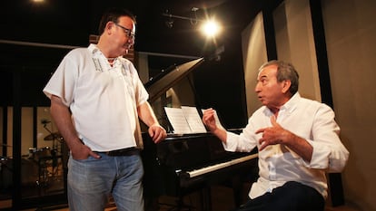 A Perales le ha resultado sencillo. "Cuando escribo, llevo mucho tiempo con las notas en la cabeza. Me siento como una mujer embarazada: a los nueve meses me sale una canción. Voy acumulando ideas, tonos, y un día escribo y sale del tirón. Lo mismo me ha ocurrido aquí". Ayer por la tarde, en el estudio de grabación, ambos reían como niños mientras veían una secuencia de El autor salpicada con una melodía de jazz latino. "Es mis músicos vienen de ahí. Pepe Rivero [su mano derecha] es cubano, y un monstruo. Yo voy siempre con los mejores, porque como soy flojito, ellos me engrandecen", cuenta entre risas el compositor. Martín Cuenca ha perdido un mito, pero ha ganado un amigo.