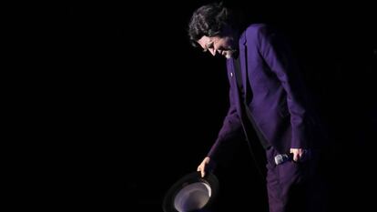 A 2017, la misma España excesiva mediante, a la que él ilustra con sus virtudes y sus pecados cómo casi nadie lo consigue en el mundo de la cultura, así lo ha hecho. Sabina, a sus 68 años, es un superviviente. Como cantó anoche con su inimitable y al mismo tiempo mil veces imitada voz ronca, “superviviente, sí, maldita sea”. Fue en Lágrimas de mármol, una de las nuevas canciones de su último disco Lo niego todo, el primero en siete años y que se encargó de presentar en la primera parte de su concierto en el WiZink Center de Madrid, donde hoy repite faena ante el público de la capital, “su casa” según sus palabras. Y lo es para el autor de Pongamos que hablo de Madrid y el tipo que tenía las llaves de la madrugada de la ciudad. Qué duda cabe. El pabellón le recibió en pie, con un sonoro aplauso, mientras la emoción le recorría el rostro con perilla cana.