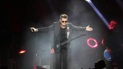 El cantante, en el cénit de su carrera, seduce a 50.000 personas en el Vicente Calderón