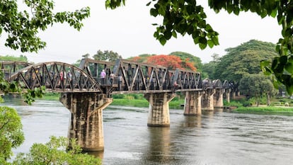 Ese puente de 346 metros que el viajero puede ver en cómodas excursiones desde Bangkok sobre el rebautizado Kwai, en las cercanías de Kanchanaburi, es uno metálico que los japoneses se trajeron de Java. Durante la guerra coexistió con otro de madera construido a mano por los sufridos prisioneros del cruel Ejército nipón, que estaba a unos quinientos metros de distancia y se parecía más al de la película y al de nuestra imaginación. Ambos fueron bombardeados y hundidos por la aviación británica en 1945, pero solo el metálico (numerado 227) volvió a reconstruirse.