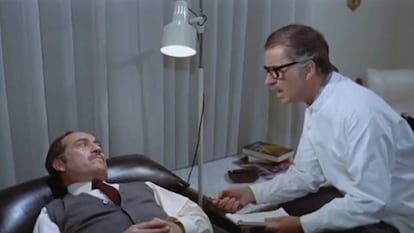 “¡Tenemos un defecto, tenemos un defecto, que nos gustan las gachís, que nos gustan las gachís!”. Ahí estaban, este martes, en Historia de nuestro cine de La 2, Pepe Sacristán, Rafael Alonso y López Vázquez, encorbatados, peludos, pequeños, gesticulantes, descontrolados, salidos, rijosos, gritones, patrióticos, representantes en Lo verde empieza en los Pirineos (1973) de lo que el director Vicente Escrivá entendía como el prototipo del hombre español. Viajó Escrivá a Biarritz un año antes de dirigir esta inaudita película y se encontró con que los españoles hacían cola en los cines para ver El último tango en París, y se dijo: “Aquí hay película”. Si se trataba de conseguir éxito comercial acertó, porque más de dos millones de personas fueron a reconocerse, según Escrivá, en la gran pantalla.