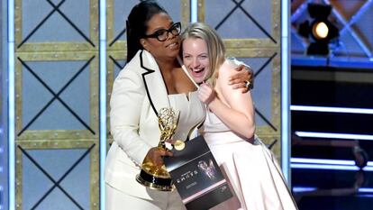 En un año de distopías en todos los niveles en Estados Unidos, The Handmaid’s Tale (El cuento de la criada), un drama futurista en el que las mujeres han sido esclavizadas para servir como cobayas reproductoras, ganó este domingo el máximo premio de los Emmy. La pesadilla soñada por la novelista Margaret Atwood hace tres décadas fue elegida como mejor serie dramática del año en la 69ª edición de los premios de la industria de la televisión. El rostro de la serie, Elisabeth Moss, ganó el premio a la mejor actriz después de siete nominaciones. En total, el drama se lleva ocho premios, los mismos que Big Little Lies, otra gran historia de mujeres.