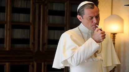 La primera temporada de TheYoung Pope, la serie de Paolo Sorrentino sobre Lenny Belardo, un pontífice que bebe Cherry Coke Zero, fuma mirando las estrellas en una azotea del Vaticano, cita a Daft Punk y a Banksy e invoca provocadoramente la áspera ortodoxia preconciliar para recuperar el misterio de una espiritualidad tantas veces mancillada en llaveros e imanes de nevera, apareció el pasado domingo reseñada en el periódico de la Santa Sede. Es la primera vez que puede leerse un pronunciamiento intramuros de una serie que, pese al gusto de Sorrentino por deformar los escenarios y el rostro de sus protagonistas, no ha disgustado en el Vaticano. Es más, algunos, como el propio Giovanni Maria Vian, director de la publicación desde hace 10 años y prestigioso experto en historia de la Iglesia, la sitúan a la altura de las grandes obras como Las sandalias del pescador (1968) o El cardenal (1963), de Otto Preminger.