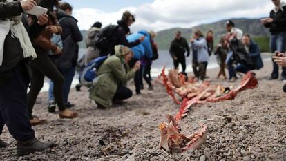 "La serie comenzó como un proyecto de fantasía y mitología, pero queríamos contratar a un guionista escocés que conociera el país, su conciencia y paisaje. Buscando, nos dimos cuenta de que nadie quería hablar del monstruo. Están cansados. Era también su gran maleficio. Así que Stephen Brady tuvo la idea de que el monstruo fuera una metáfora, un asesino en serie escondido en un pequeño pueblo normal junto al lago", explica Haines en el sótano de un centro de curling en los parajes que rodean Glasgow, donde acudió EL PAÍS invitado por Calle 13 para ver rodar la primera secuencia de la serie.