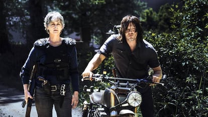 Cerca del set está el llamado 'santuario'. Es el mote que le han puesto a la sala de proyecciones donde se reúnen para leer los guiones. Cada episodio necesita unos ocho días de rodaje. Los de arranque y final de temporada, nueve. En la sala están los retratos de todos intérpretes cuyos personajes ya murieron, de ahí el nombre. Cerca de 50 caras, cada una con una cifra. “Es el número otorgado por orden de contratación. Así se le conoce por el resto del rodaje. Ahorra tiempo, espacio en el guion y guarda secretos”, explica la portavoz Brandee Brooks. El número dos está en la pared. Es Jon Bernthal (el personaje del ahora protagonista de The Punisher murió en la segunda temporada). “Por eso no me gusta esta habitación”, gruñe Norman Reedus recordando a sus amigos. Su Daryl, junto con Rick y la Carol que interpreta Melissa McBride, son los únicos personajes de la primera temporada todavía vivos. “No pensé que pasaría de los dos episodios”, admite la actriz, cuyo personaje en el cómic “se suicida con un zombi”. Ocho años más tarde, todo en ella recuerda a Carol, incluso vestida de calle. “Es lo que peor llevo. Que tengo que ponerme el rímel para ir al supermercado porque nunca sabes cuándo te pedirán un selfie”, se ríe.